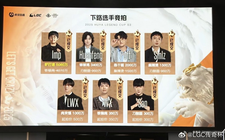 老头杯ADC位置竞拍:imp以5080万的最高价打破价格记录San300万