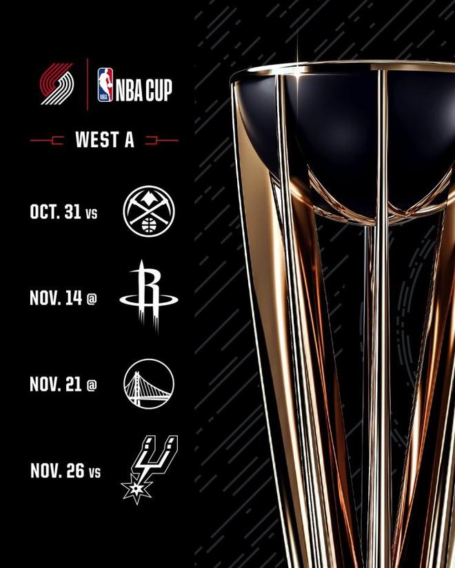开拓者晒NBA杯赛程:11月起先后对阵掘金、火箭、勇士、马刺