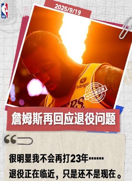 9月19日,根据媒体消息,詹姆斯在参加一档节目中透露,自己确定不会再打很多年,退役即将到来,但不是说现在要退役!