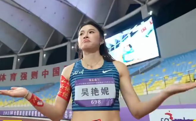 吴艳妮夺冠之后霸气地做了摊手的动作庆祝,然后竖起大拇指,紧接着做出了倾听现场观众欢呼喝彩的动作。吴艳妮确实非常霸气,她也再次证明了自己是中国女子跨栏现役第一人。