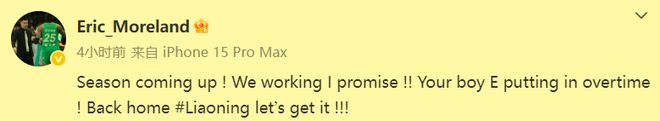 - CBA | 莫兰德上午9点自宣即将启程回辽篮!承诺再冲冠,杨鸣更有信心了