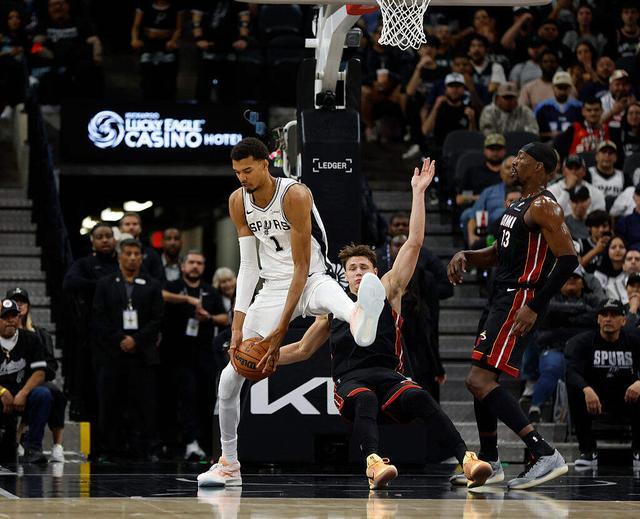 这个被勇士选中的2轮秀,已经是连续第二场比赛打出单场“20+”的表现,连续四场比赛得分上双。或许,这个夜晚,会成为效力雄鹿的罗林斯“得真鹿”蜕变契机。罗林斯是否能完成蜕变还有待时间证明,但年轻的马刺看起来已经在向着重铸圣安东尼奥荣光策马狂奔了。主场面对热火,新赛季开赛以来未尝一败的马刺继续高歌猛进。哪怕阿贾-威尔逊亲临赛场助阵,让阿德巴约大发神威,独得31分10篮板3助攻1抢断1盖帽,并且上演隔扣文班的好戏,热火也终究没能攻陷马刺主场。 我们仍未知道今年夏天的少林之旅究竟给文班带来了多么强大的buff加成,但不可否认的是,重返NBA赛场的他,已然开始展露出了一方霸主的雄姿。无论对面站着的是“武班冠马”凯尔-韦尔,还是有“绯闻女友”加持的阿德巴约,文班胸中都有破敌良策。这一战,文班仅用10次出手就轻松拿下27分,同时还拿下18个篮板送出6次助攻完成5记封盖。