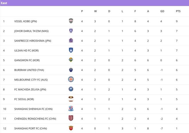 - 亚冠 | 大写的尴尬!申花客场不敌柔佛新山,亚冠积分榜中超前三集体垫底