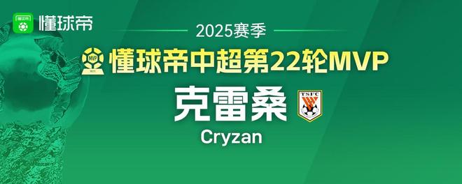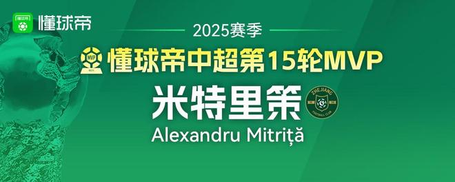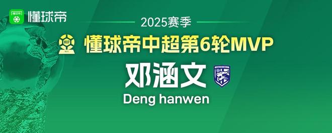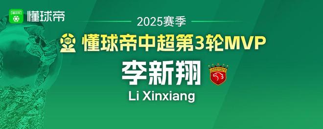 2025赛季懂球帝中超全部30轮MVP一览:五人三次当选并列最多