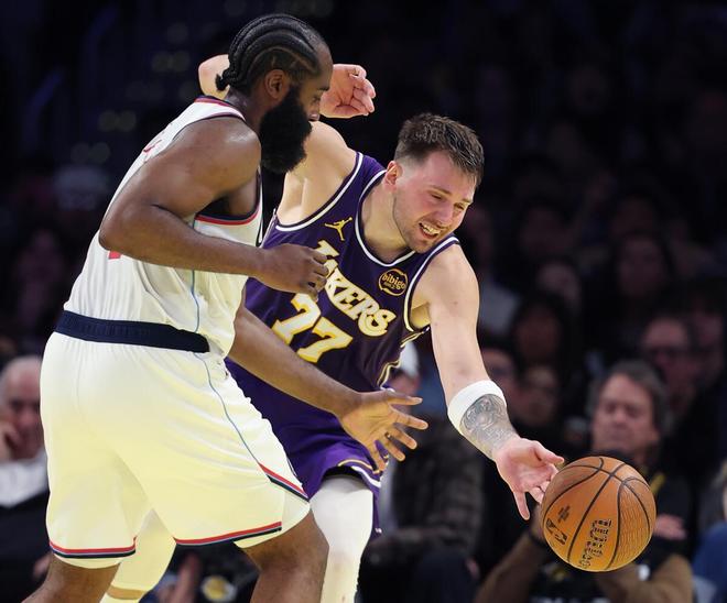 北京时间11月26日,湖人与快船展开了NBA杯小组赛西部B组的对决。主场作战的湖人,志在延续强势表现。洛城德比的巅峰对决,是当天的焦点大战。该场比赛,还是小卡伤愈复出的第二场比赛。两队在场上反复缠斗,比赛进行至末节最后时刻,才得以分出胜负。詹姆斯创NBA历史第1神迹,湖人5连胜升至西部第2!东契奇准3双,里夫斯末节18分暴走!全场比赛回顾东契奇开场后火力全开,帮助紫金军团抢占先机。哈登携手科林斯砍分,快船多点开花得以紧咬比分。首节打完,湖人落后1分,东契奇单节轰下24分。哈登防守东契奇