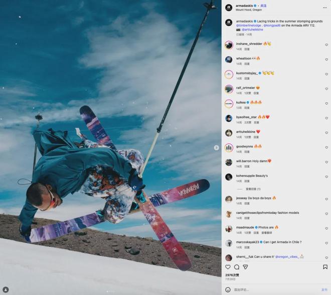 而他长期使用的 Armada 雪板则以一种“顺便被看见”的方式,潜移默化地进入受众视野。对年轻滑雪者来说,Harlaut 的形象本身就代表着某种“酷”,而这个“酷”也被直接延伸到品牌上。