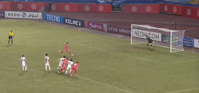 随后,主裁判做出争议判罚,认定江文豪禁区内手球,判罚给河内公安点球。然而,若奥-阿图尔主罚的点球被张健智飞身没收,国安逃过一劫。