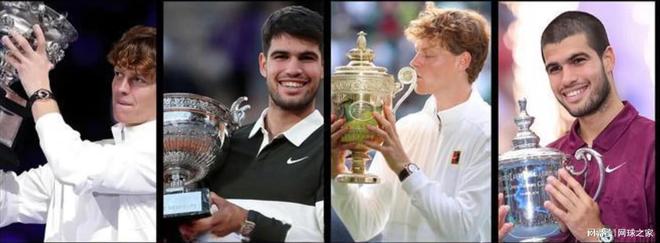 阿尔卡拉斯在法网、温网和美网均打进了决赛;辛纳更猛,澳法温美全部挺进了决赛,这一壮举让他就此同费德勒、德约等前辈们并肩。