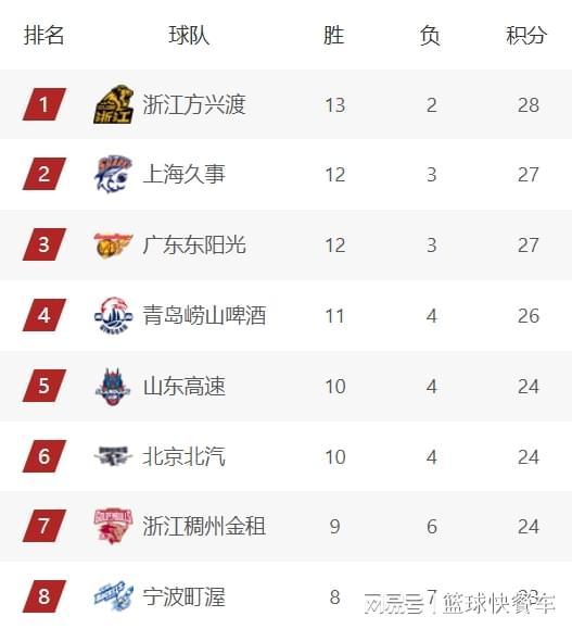 附:CBA积分榜最新排名