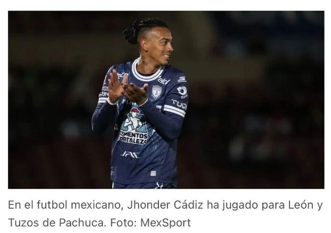 同时,武汉三镇的潜在外援引援目标也有曝光。根据媒体《超级体育报》的报道,三阿珍有意墨西哥超级联赛球队帕丘卡球员洪德尔-卡迪斯,并提供了一份一年期的租借报价。卡迪斯上个赛季代表帕丘卡出场16场,其中7次首发,贡献3粒进球。
