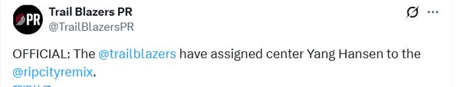 开拓者官宣下放杨瀚森:今日再为混音出战蓝队上一场22分7板3助
