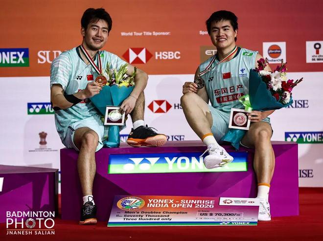 昨天晚上,2026年印度羽毛球公开赛在新德里结束争夺。面对比赛环境较差、困难较多的中国羽毛球队将士们顶住压力,以2金1银结束本站比赛。其中男双梁伟铿/王昶15个月后再夺750级别公开赛冠军,女双谭宁/刘圣书继上站马来西亚公开赛后背靠背再次夺冠。